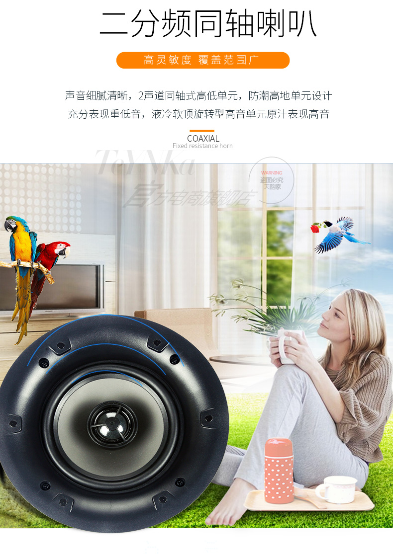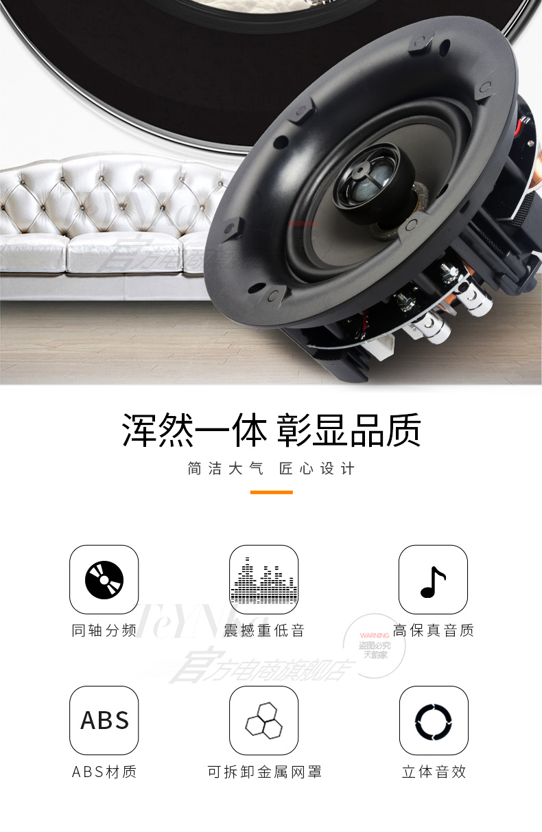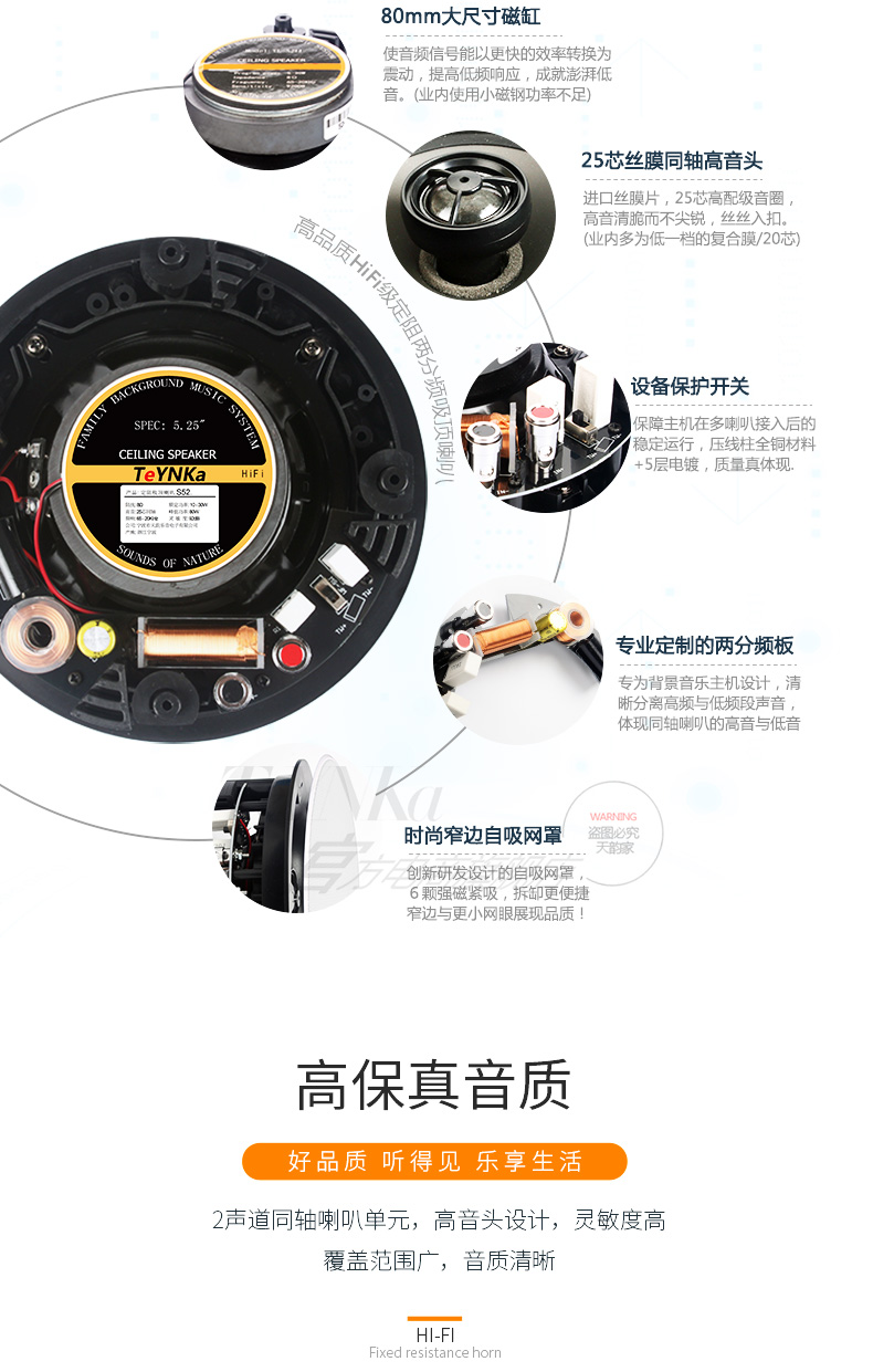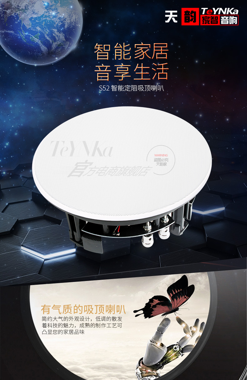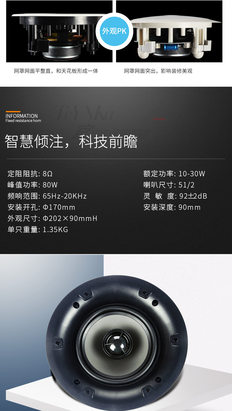 S52定阻吸顶喇叭 5.25"窄边高保真版